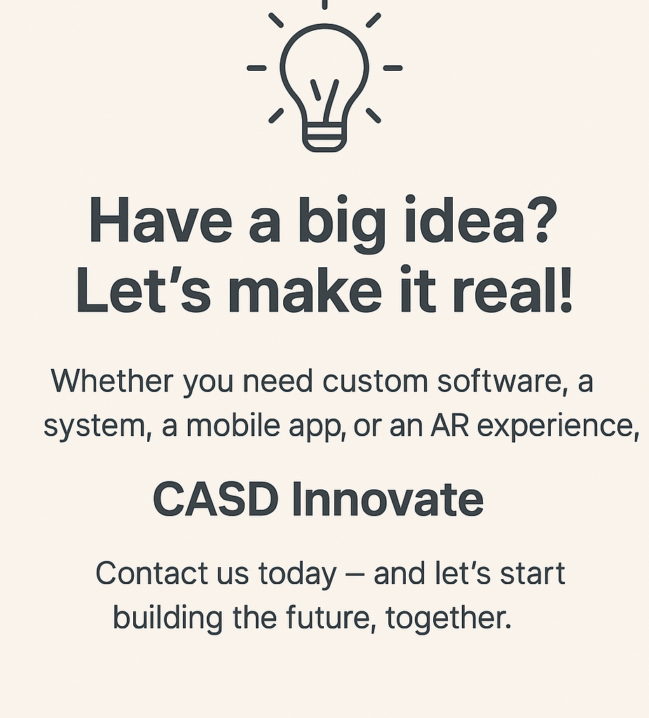 📩 Get in touch with CASD Innovate today. Let’s build something extraordinary that takes your brand and business to the next level.